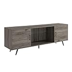 Take your living room to the next level with this stylish 70-inch TV stand. Made with metal tapered legs, sleek metal handles, and a center glass shelf for a mid century modern appearance. This high-grade MDF entertainment center creates additional storage space in your home for media, electronics, accessories, books, or décor. Use as a TV stand in your living room, a storage cabinet in your bedroom, or a buffet in your kitchen or dining room. Including two side cabinets for closed storage space and center open shelving. Can support up to a 80-inch TV
